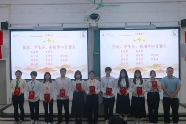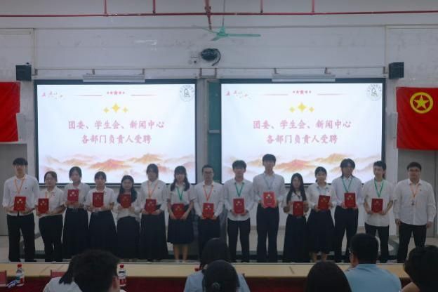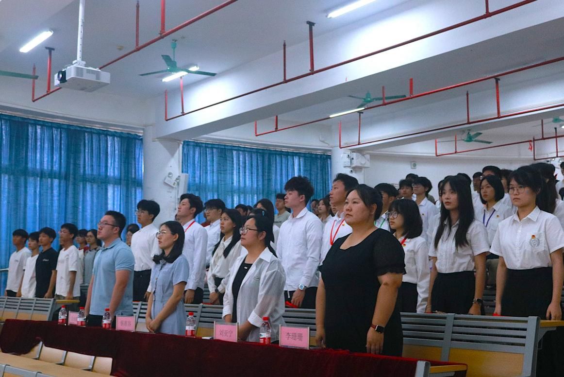 会议伊始,全体师生肃立,奏唱国歌。随后,进行学生干部受聘环节。