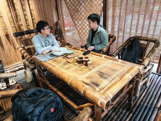 调研期间,陈铧耀团队一行与广东建中新竹材科技有限公司工程部主管谢睿就当前竹材在建筑应用中面临的关键技术瓶颈进行了深入交流。谢睿指出,目前竹材建筑尚无专用涂料,普遍使用的传统油漆存在附着力差、易剥落等问题;更严重的是,油性油漆会溶解竹材内部成分,导致颜色加深,严重影响建筑外观与耐久性,已成为制约竹材规模化应用于建筑领域的重要障碍。针对这一产业痛点,钟细明老师介绍了其团队最新研发的“微腐蚀水性-油性复合涂料”技术。该技术通过可控微腐蚀工艺适度增加竹材表面粗糙度,显著提升漆膜附着力;同时采用“内水外油”的双层涂装结构——内层使用环保水性漆,有效阻隔竹材内部物质析出;外层采用耐候性油性漆,防止外部水分渗透与环境腐蚀。该方案兼顾环保性、功能性与美观性,有望为竹材建筑提供系统性涂装解决方案。谢睿主管对仲恺团队提出的技术路径表现出浓厚兴趣,并现场提供了多种竹材样品,希望校企双方围绕实际应用场景开展针对性联合开发。此次调研不仅精准对接了企业技术需求,也为8858cc永利发挥多学科交叉优势、服务地方绿色低碳产业发展提供了新契机。