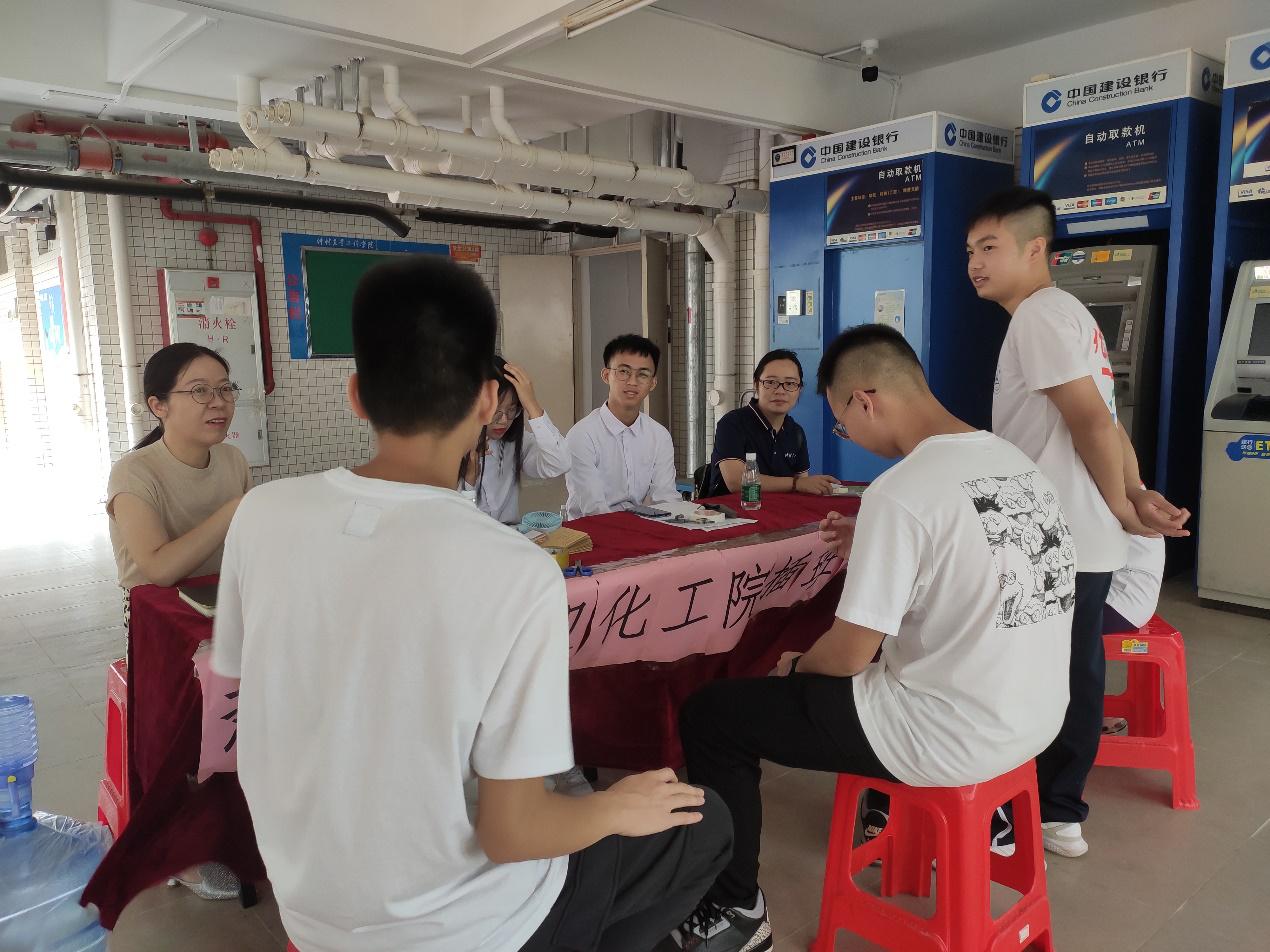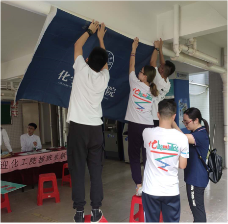9月4日上午,8858cc永利插班生迎新活动在学生公寓4栋宿舍架空层如期举行。为更好地迎接新生,8858cc永利学生团队精心布置迎新场地。并组成志愿者团队在澳门桥迎接并指引新生来到迎新场地报到。
