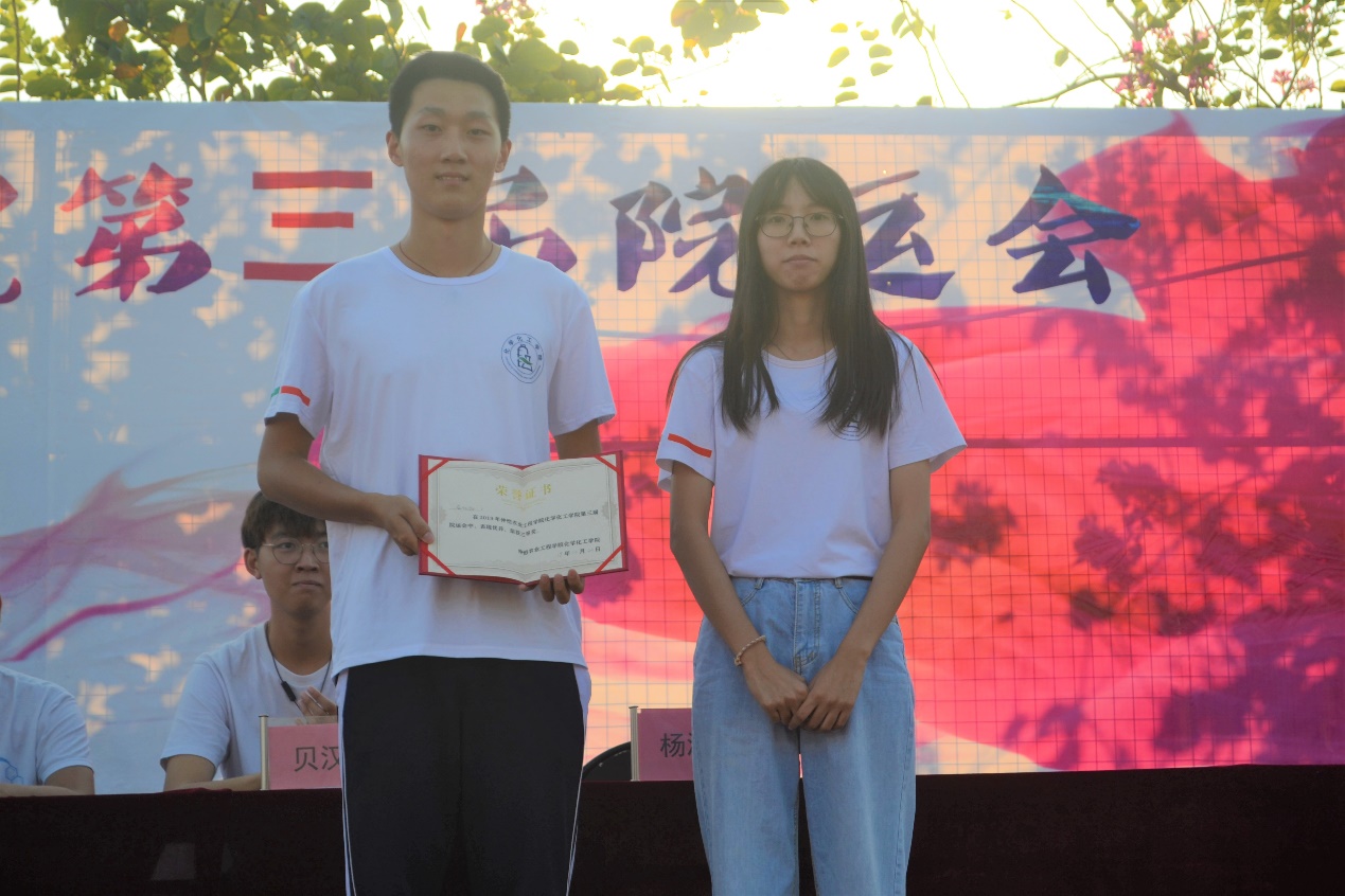 各项比赛结束后,闭幕式上为本次院运会中表现优异的班级进行颁奖:
